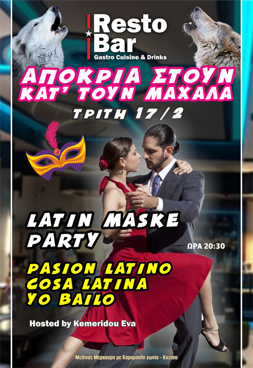 Κοζάνη: Σήμερα Τρίτη 17 Φεβρουαρίου το Latin Maske Party στο "Resto Bar".
